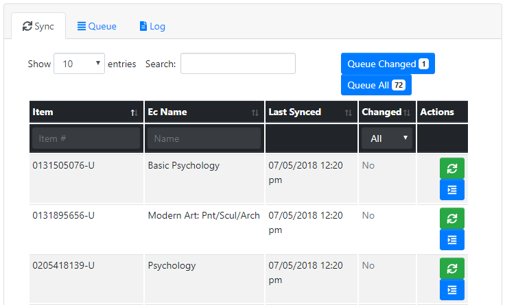 This button takes all changed items and adds them to a list. Once added to the queue, the sync will begin to work through items until the list is done.